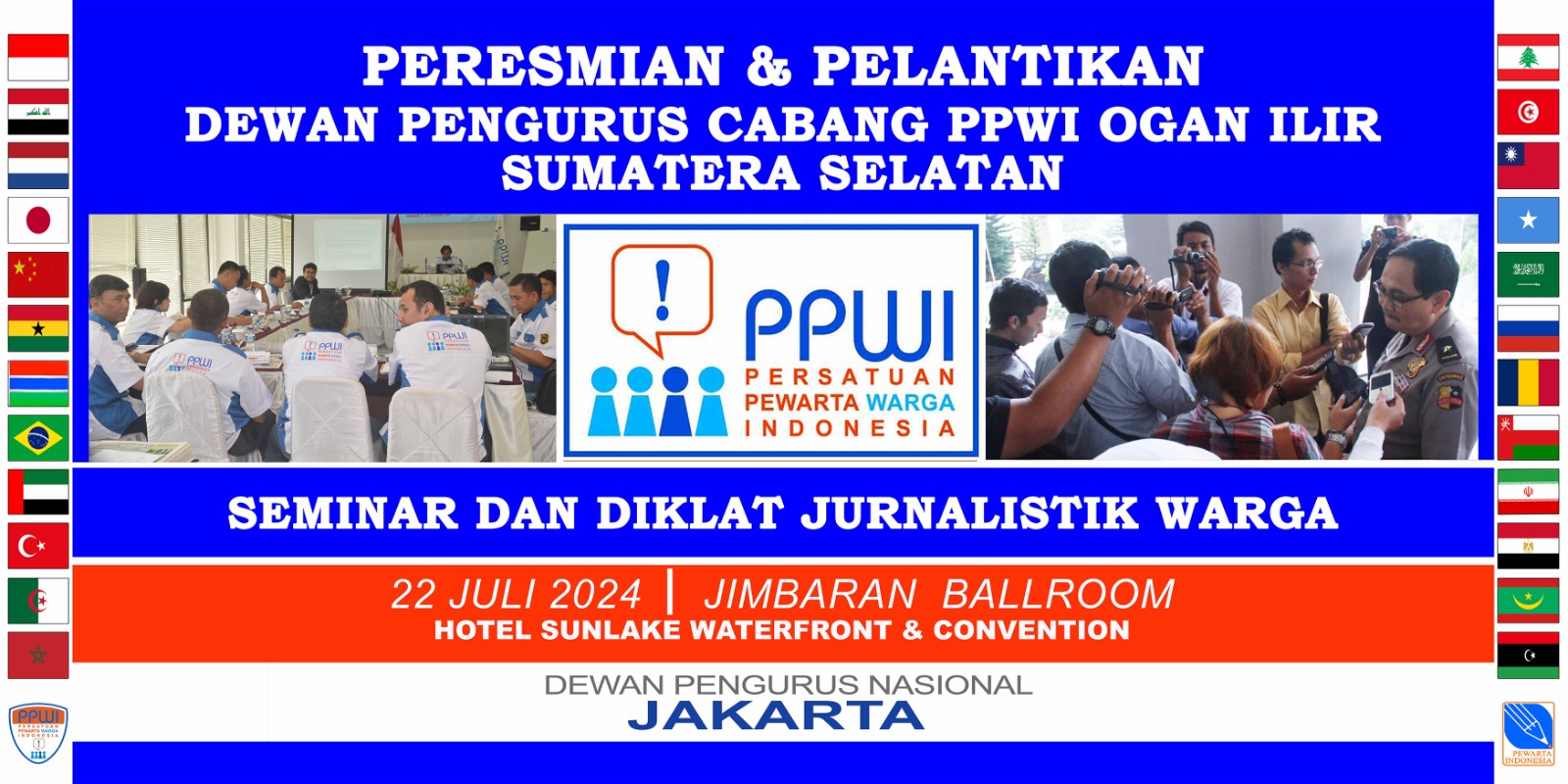 – PPWI akan mengadakan acara Peresmian dan Pelantikan Dewan Pengurus Cabang Persatuan Pewarta Warga Indonesia (DPC PPWI) Ogan Ilir, Sumatera Selatan, yang dirangkai dengan Seminar dan Diklat Jurnalistik Warga, pada: