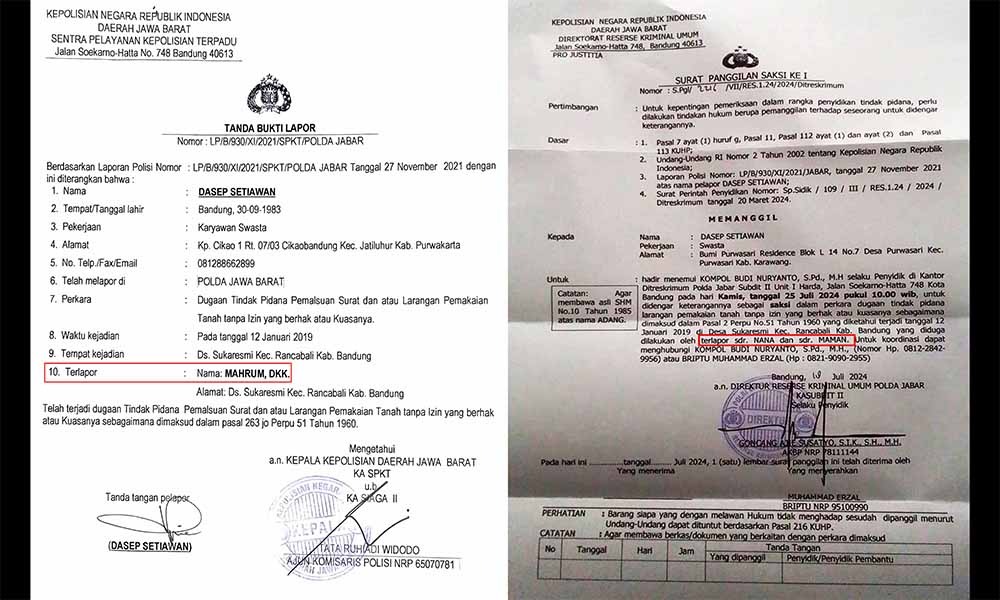 Dalam keterangan lanjutannya, pria asal Pekanbaru itu mengatakan bahwa setelah pihaknya mendatangi Polda Jabar pada Senin, 8 Juli 2024 lalu, kini penyidik kasus penyerobotan tanah seluas 6.000 meter persegi yang didapatkan orang tua Dasep tahun 1985 dari Gubernur Jawa Barat saat itu, buru-buru mengirim surat panggilan kepada pelapor untuk dimintai keterangan sebagai saksi pelapor. Namun, menurut Wilson Lalengke, dalam surat panggilan dimaksud, yang menjadi terlapor adalah orang lain, bukan Haji Mahrum.