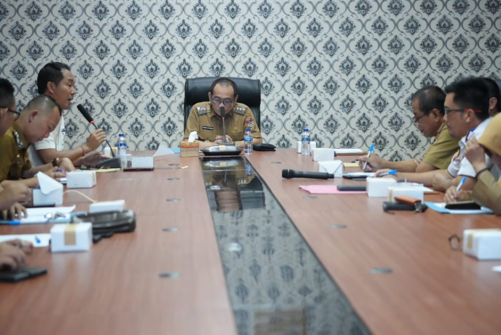 Penjabat Bupati Mesuji Febrizal Levi Sukmana, S.T., M.T., M.M. melaksanakan rapat Evaluasi Pendapatan Asli Daerah Semester I Tahun 2024 di Ruang Rapat Bupati, Kantor Bupati Mesuji