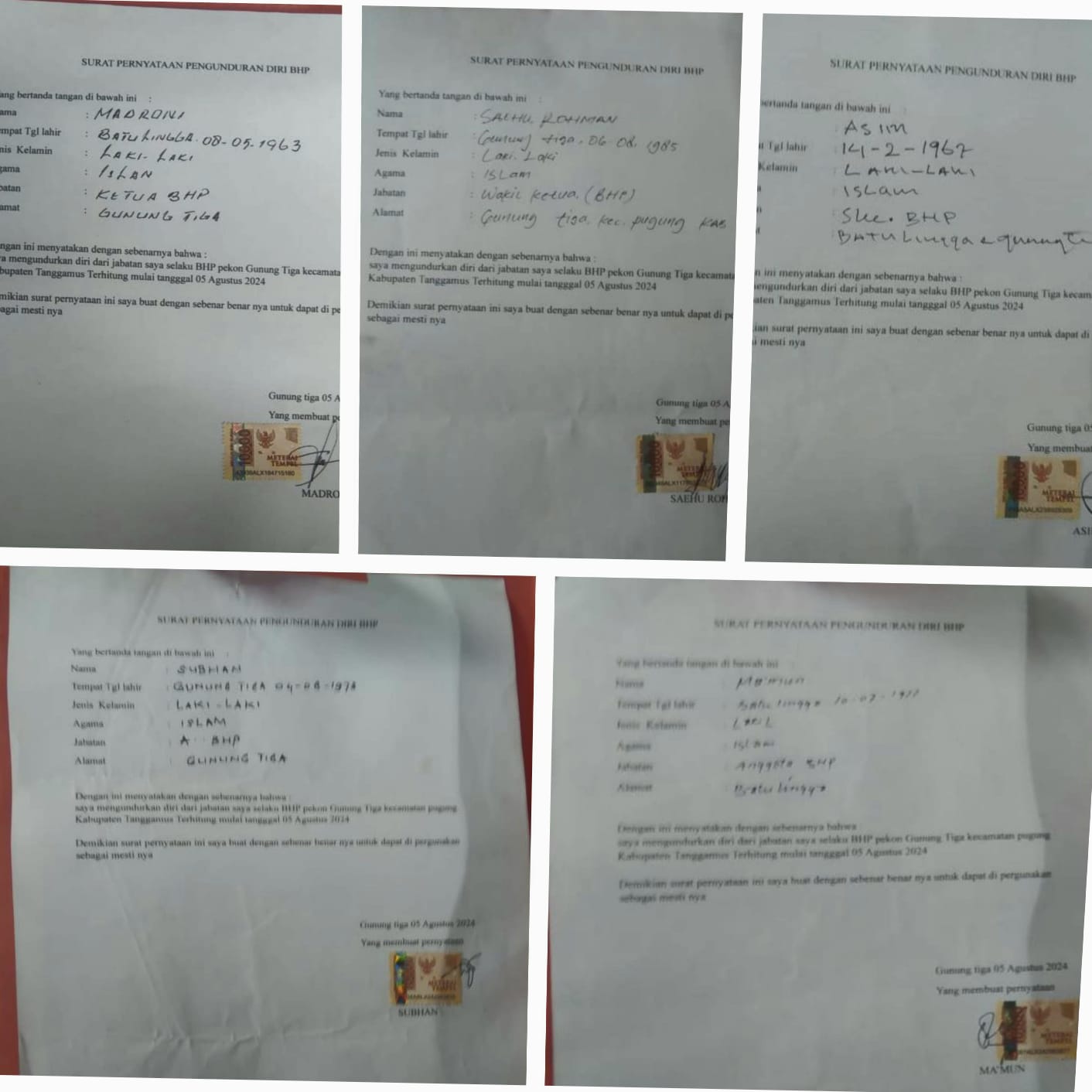Ada Apa…..? Ketua dan seluruh angota BHP pekon Gunung Tiga serentak Layangkan Surat pengunduran Diri Ke PJ Bupati Tanggamus