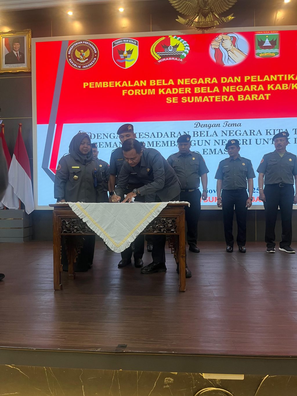 Kegiatan Pembekalan Bela Negara dibuka dengan tari tarian khas Sumbar dilanjutkan dengan Sambutan Sestama Pusat R. Elpin Subagus , Kolonel Amirudin Laupe dari Direktorat Bela Negara Kementerian Pertahanan memberikan selamat kepada pengurus Bakorda Forum Kader Bela Negara yang sudah dilantik dengan berpesan bahwa Forum Kader Bela Negara merupakan wadah kader bela negara dibawah binaan Kementerian Pertahanan harus bisa menjaga nama baik kementerian pertahanan dan harus mampu mengimplementasikan nilai nilai bela negara khususnya kepada masyarakat di sumatera barat . Kegiatan di buka oleh perwakilan Gubernur Sumatera Barat , acara juga di hadiri oleh Danrem 032 Wirabraja Brigjen TNI Machfud sekaligus sebagai pemateri